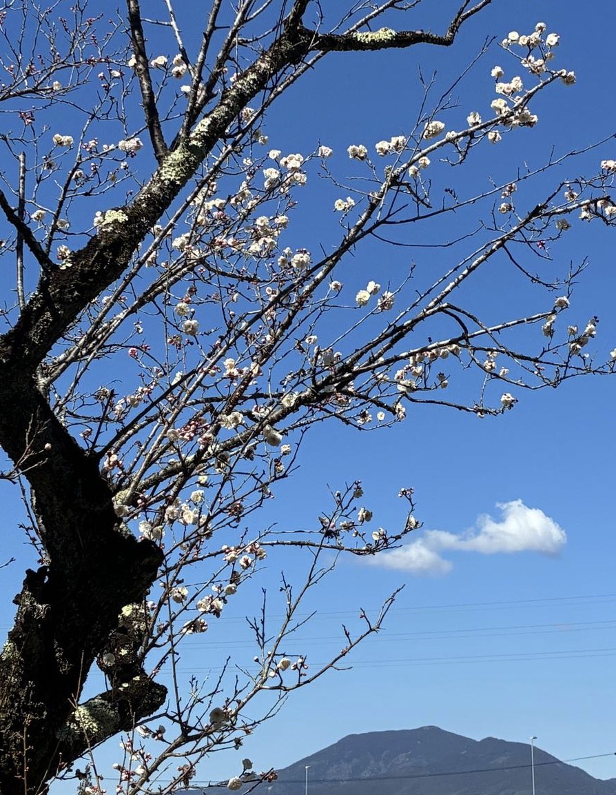 東西明王堂 の梅の花と笠置山