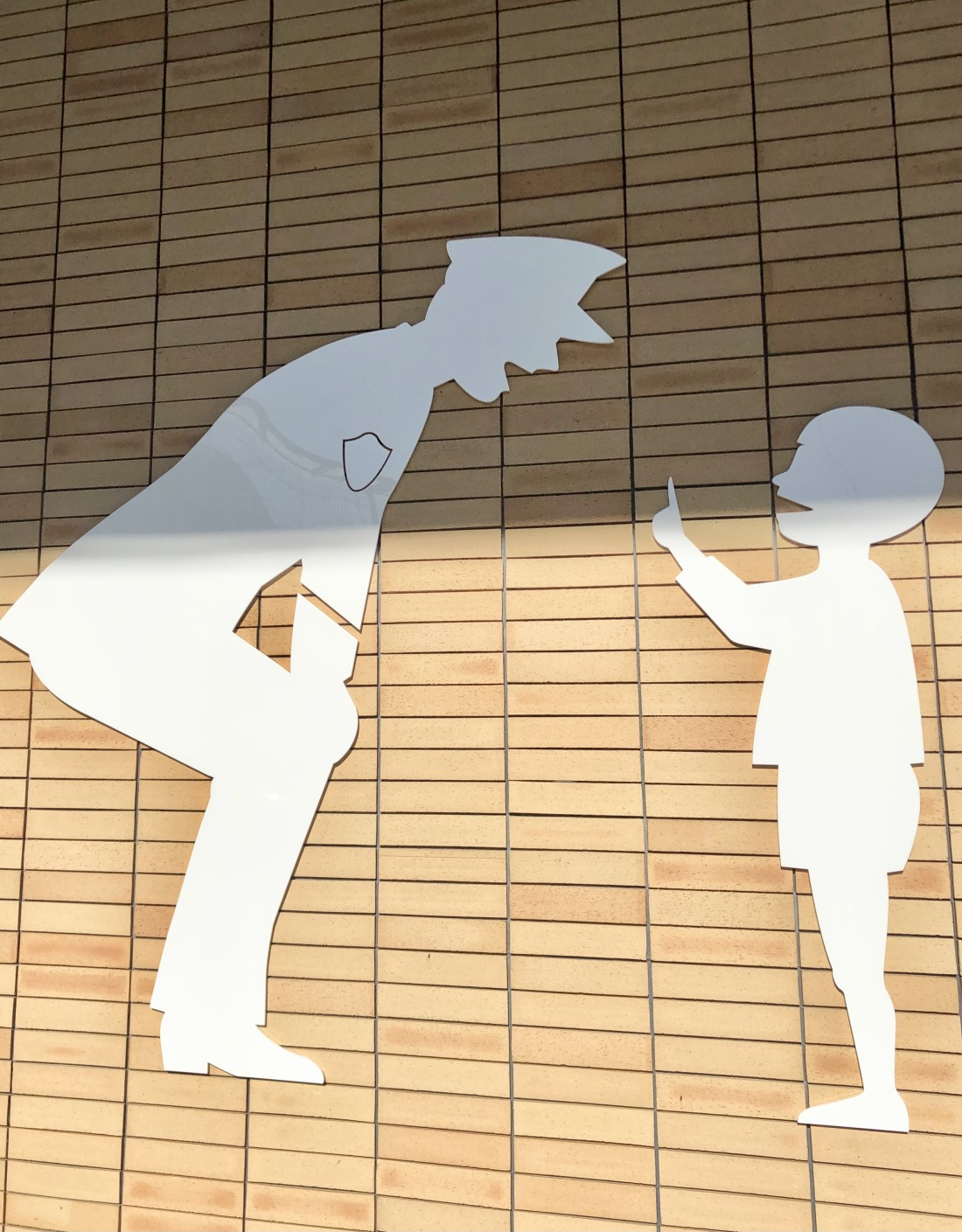言葉も表情も描かれてはいないのに、腰を曲げて目線を下げ、子供の世界に入ろうとする姿勢だけでこんなにも『温度』が伝わってくるものなんですね。交番と言う言葉だけで『権威』や『緊張』を連想しまいがちですが